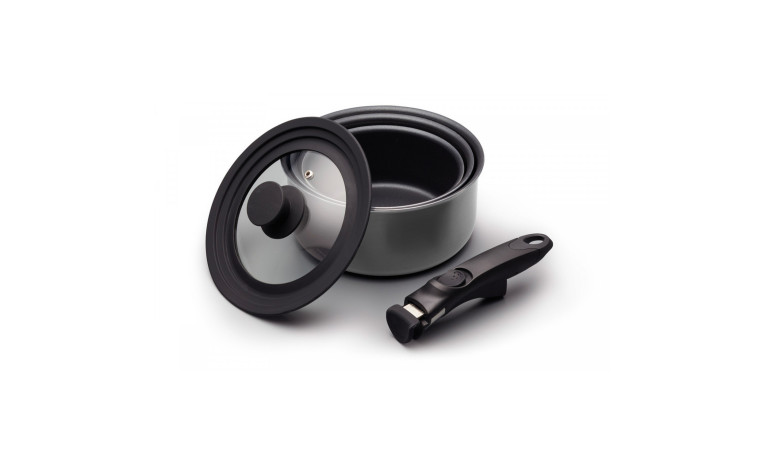 Lot de 3 casseroles avec poignée amovible et couvercle