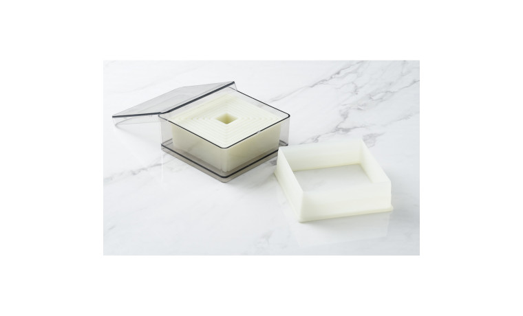 Boîte de 9 découpoirs carrés cannelés en matériau composite polyglass (plastique alimentaire résistant jusqu'à 160°C).