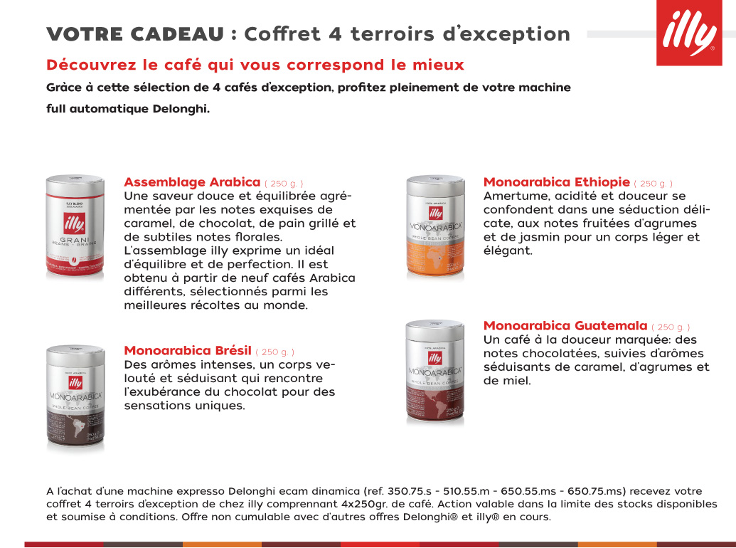 La Machine expresso Dinamica ECAM 350.55B a un look épuré et moderne très séduisant ! On est également bluffé par ses performances et l'étendue des possibilités qu'offre ce broyeur expresso automatique : Expresso lungo, Ristretto, LONG, Doppio+, Caffè Latte, Flat White, Lait Chaud... vous pouvez varier vos boissons selon vos goûts et envies sans jamais vous lasser ! On apprécie aussi ses fonctionnalités pratiques comme la touche Real AutoClean qui nettoie les conduits intérieurs du réservoir à lait pour faciliter l'entretien au quotidien ! Le + : Le système LatteCrema qui permet d'obtenir un Cappuccino parfait. La mousse de lait obtenue est onctueuse et dense ! |