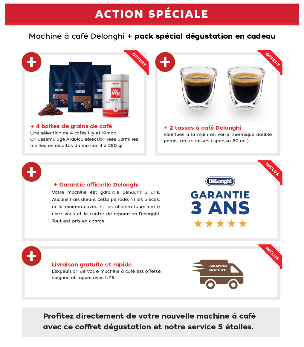 Superbe machine Pas trop brillante et garantie 3 ans Le café est excellent surtout le doppio et les cappuccinos au top !!