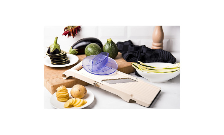 La mandoline Benriner reste ma mandoline préférée, elle est très légère grâce à sa fabrication en plastique solide et son tranchant reste incomparable même en l'utilisant tous les jours.