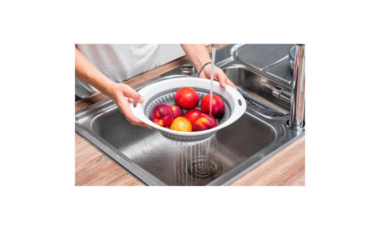 Ultra-pratique, cette passoire sait se faire toute petite et se faire oublier. Une fois repliée, elle se range facilement et n'occupe que très peu de place.