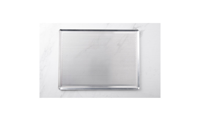 Plaque aluminium perforée favorisant la circulation de l'air chaud pour une cuisson homogène.